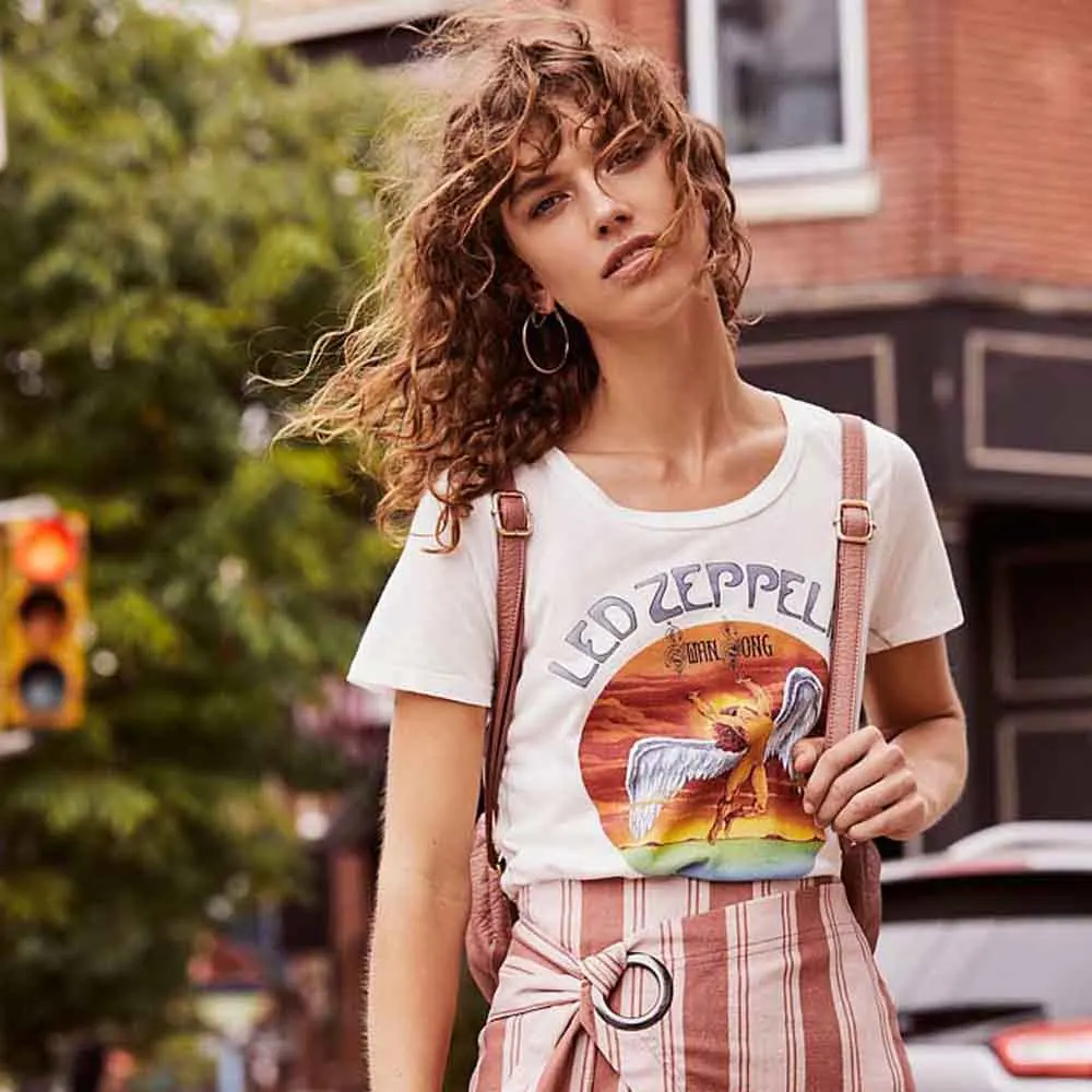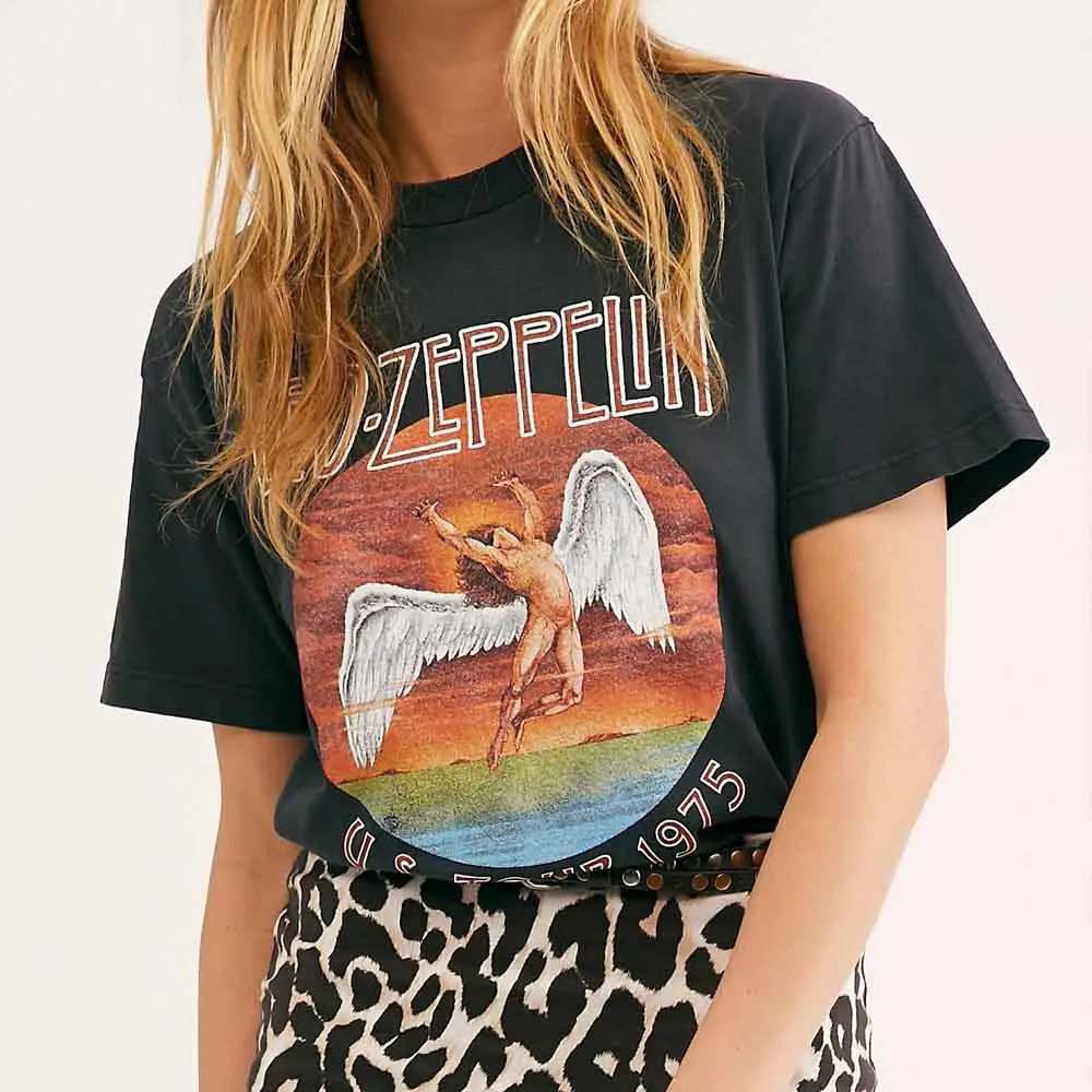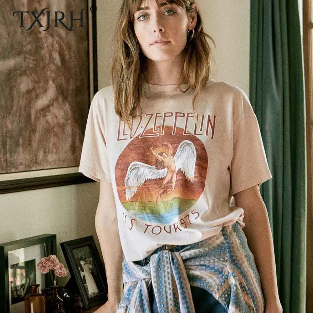 Special Offer TXJRH Trendy led zeppelin list anioł postać z krótkim rękawem Tee stylowe kobiety O Neck sweter bawełniana koszulka topy 2 kolory Discount 30% Today!