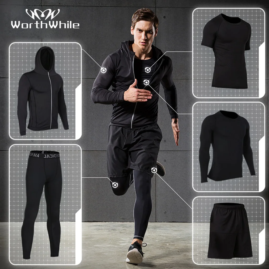 Special Offer Worthing 5 sztuk zestaw dres męski kompresja odzież sportowa dla mężczyzn siłownia ćwiczenia spodnie treningowe bieganie garnitury Discount 35% Today!