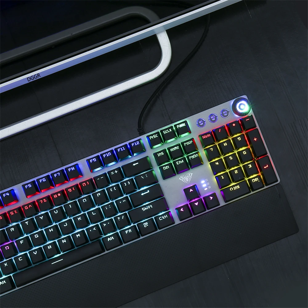 Special Offer AULA mechaniczna klawiatura gamingowa 104 klawiszy przewodowy podświetlany Metal Anti ghosting na komputer PC z angielskim rosyjskim hiszpańskim arabskim Discount 40% Today!