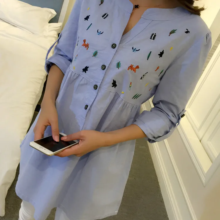 Special Offer 6002 # talia plisowana haft bawełniana koszula ciążowa letnia i wiosenna bluzka topy odzież dla ciężarnych kobiet odzież ciążowa Discount 6% Today!