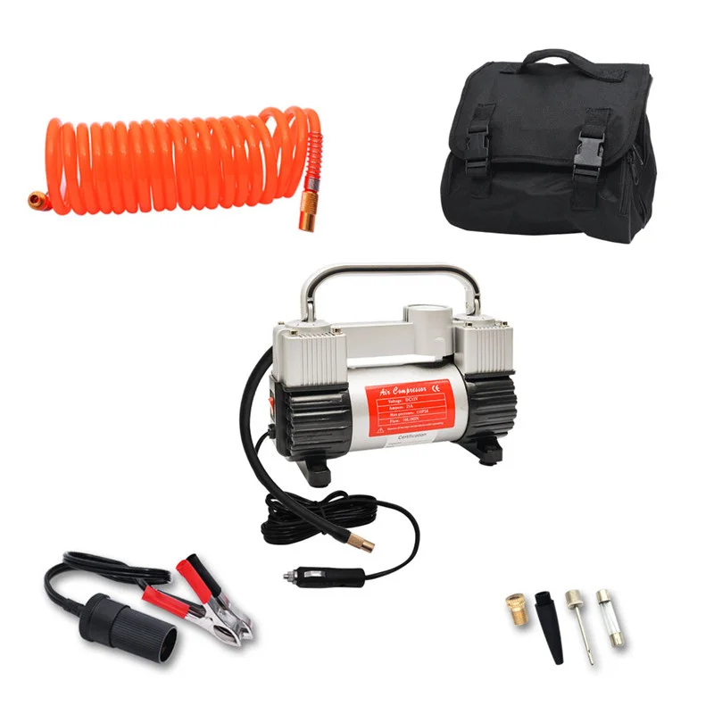 Special Offer GSPSCN pompa do opon wytrzymałe cylindry podwójne z przenośna torba 12V metalowa pompa sprężarki powietrza 150PSI z adapterem Discount 40% Today!