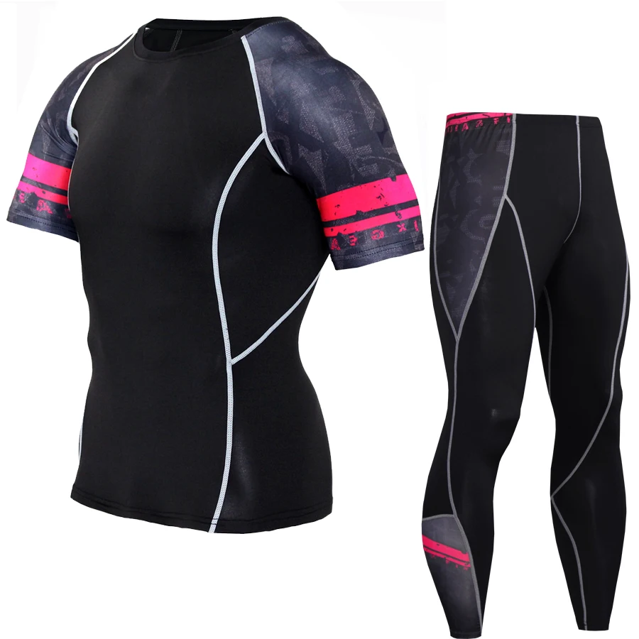 Special Offer Fajne 2017 zestawy odzieży sportowej mężczyzn kompresji T Shirt biegaczy szybkie suche spodnie Fitness szkolenia męskie legginsy MMA modne T shirty Discount 30% Today!