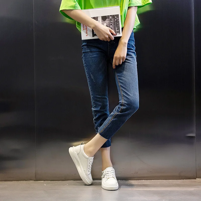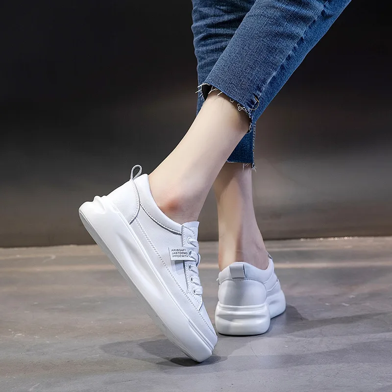 Special Offer SWYIVY oryginalne skórzane obuwie damskie trampki 2019 jesienne lekkie białe trampki platforma Med Heel damskie buty wygodne 40 Discount 30% Today!