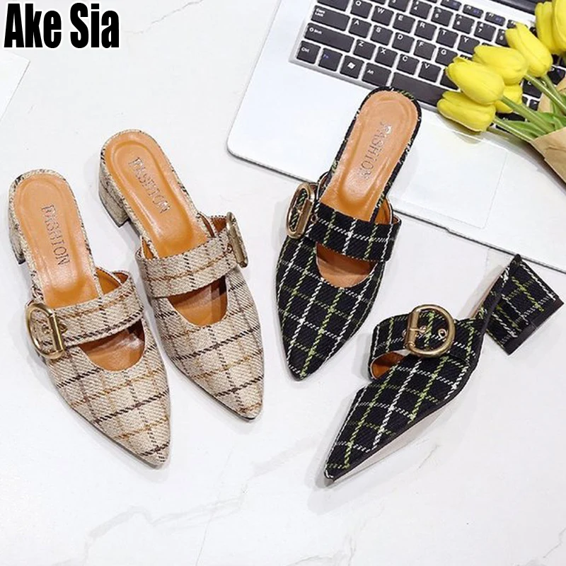Special Offer Nowych kobiet Lady Babouche szpiczasty nosek klamra pół Scuff muły slajdy drążą kobieta grube wysokie obcasy zwykłe kapcie buty A518 Discount 30% Today!