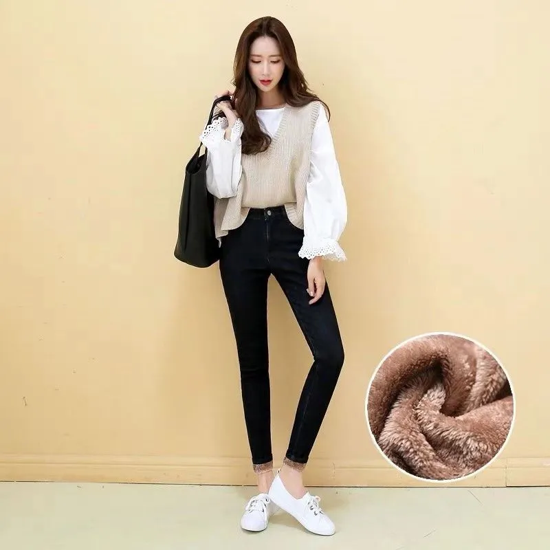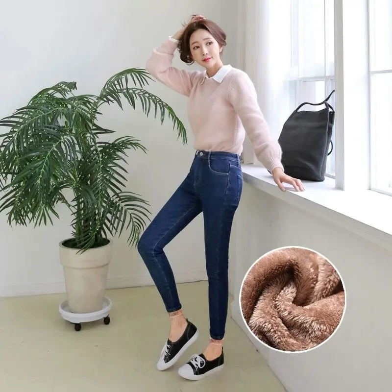 Special Offer Mama Plus rozmiar aksamitne ciepłe elastyczna dopasowane dżinsy kobiet 2019 zima nowy wysokiej talii spodnie damskie zagęścić Denim długie spodnie Streetwear Discount 49% Today!