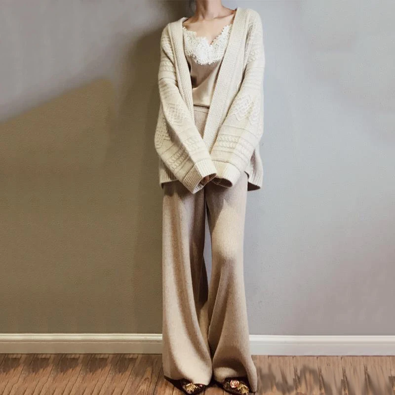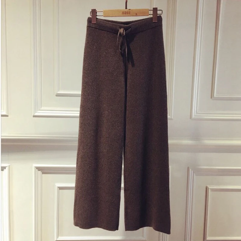 Special Offer Jesień zima nowy miękki wosk wygodne kaszmirowe wielbłąd spodnie damskie czysta dzianiny szerokie spodnie nogi dorywczo luźne spodnie z dzianiny damskie Discount 55% Today!