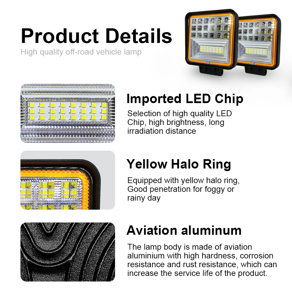 Special Offer Roadsun 48W 72W listwa led białe światło z żółtym Halo światła robocze led do ciągników terenowych DRL samochód SUV ciężarówki lampa przeciwmgielna 12V 24V Discount 62% Today!
