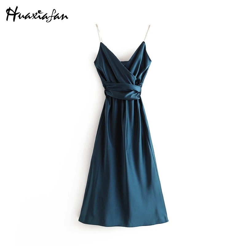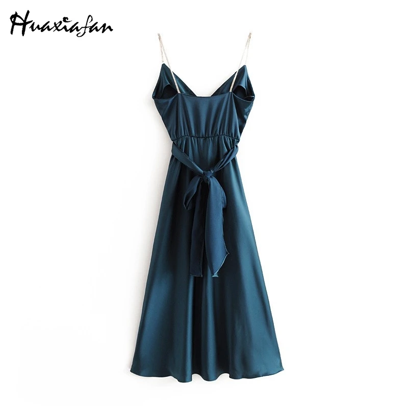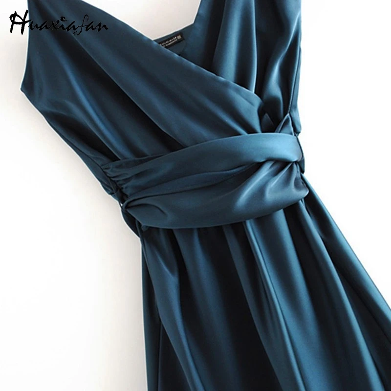 Special Offer Huaxiafan kobiety sukienka bez rękawów Sexy Solid Color Backless Vestidos Straped V Neck Party sukienka tunika Moda De Mujer długie sukienki Discount 60% Today!