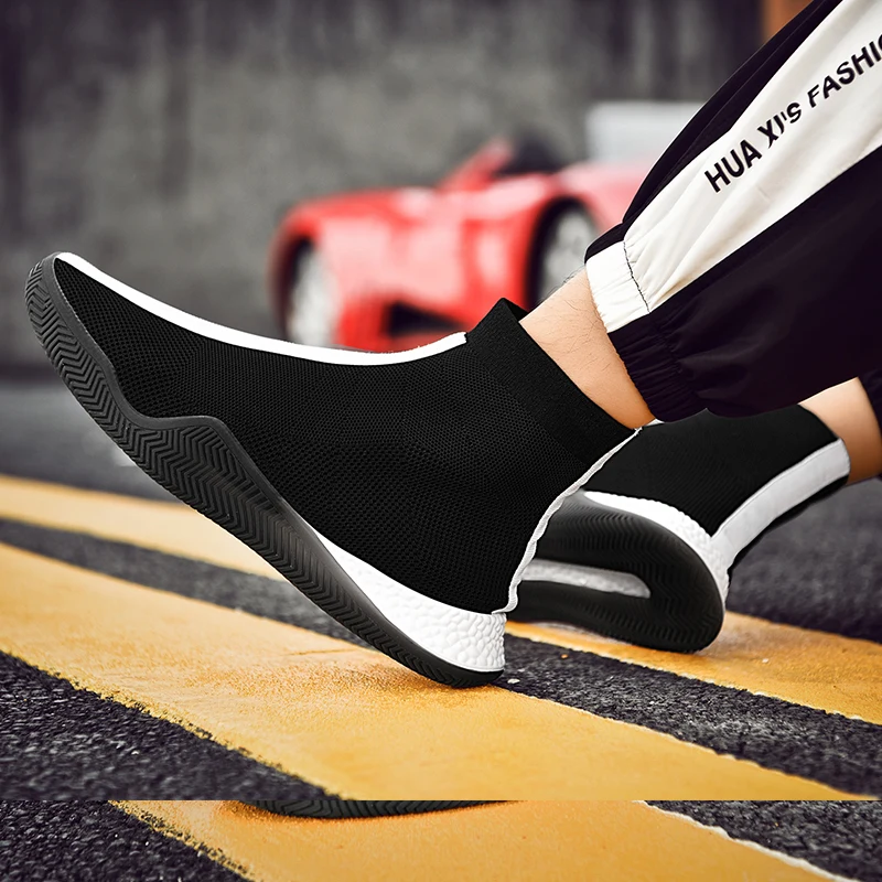 Special Offer Proste męskie siatkowe obuwie buty sportowe wygodne oddychające wysokie, aby pomóc skarpetki buty obuwie zapatos hombre Discount 53% Today!